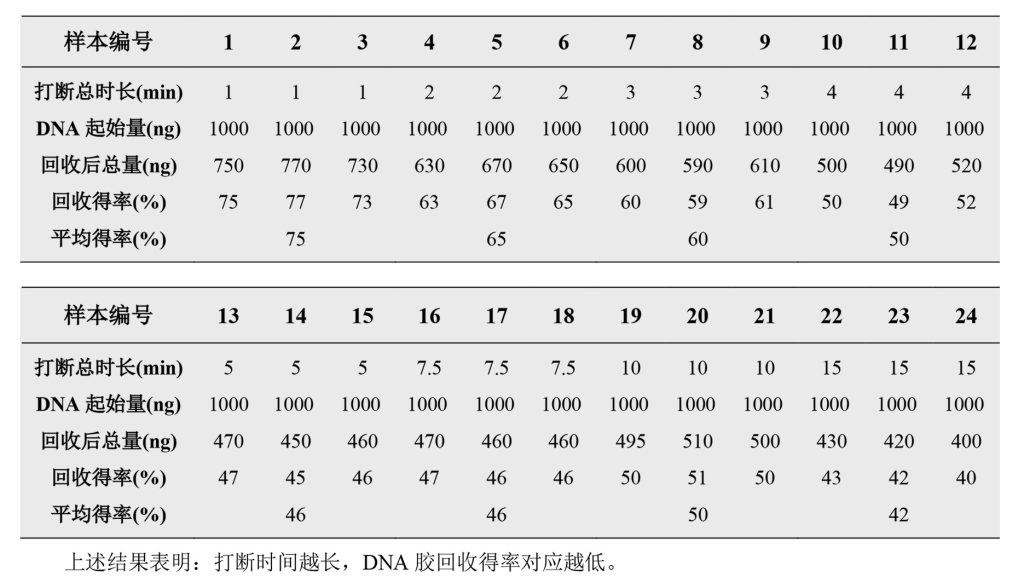 可對100bp-5kb范圍的DNA片段進行高質量的剪切,可得到高度重復的DNA剪切結果,并且DNA片段緊密分布在指定的大小范圍內,不同初始樣本量均能得到一致性的片段。